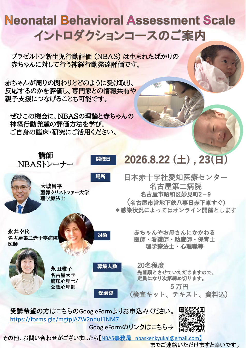 | 対象 | 赤ちゃんやお母さんにかかわる 医師・看護師・助産師・保育士・作業療法士 理学療法士・臨床心理士/公認心理師等 |